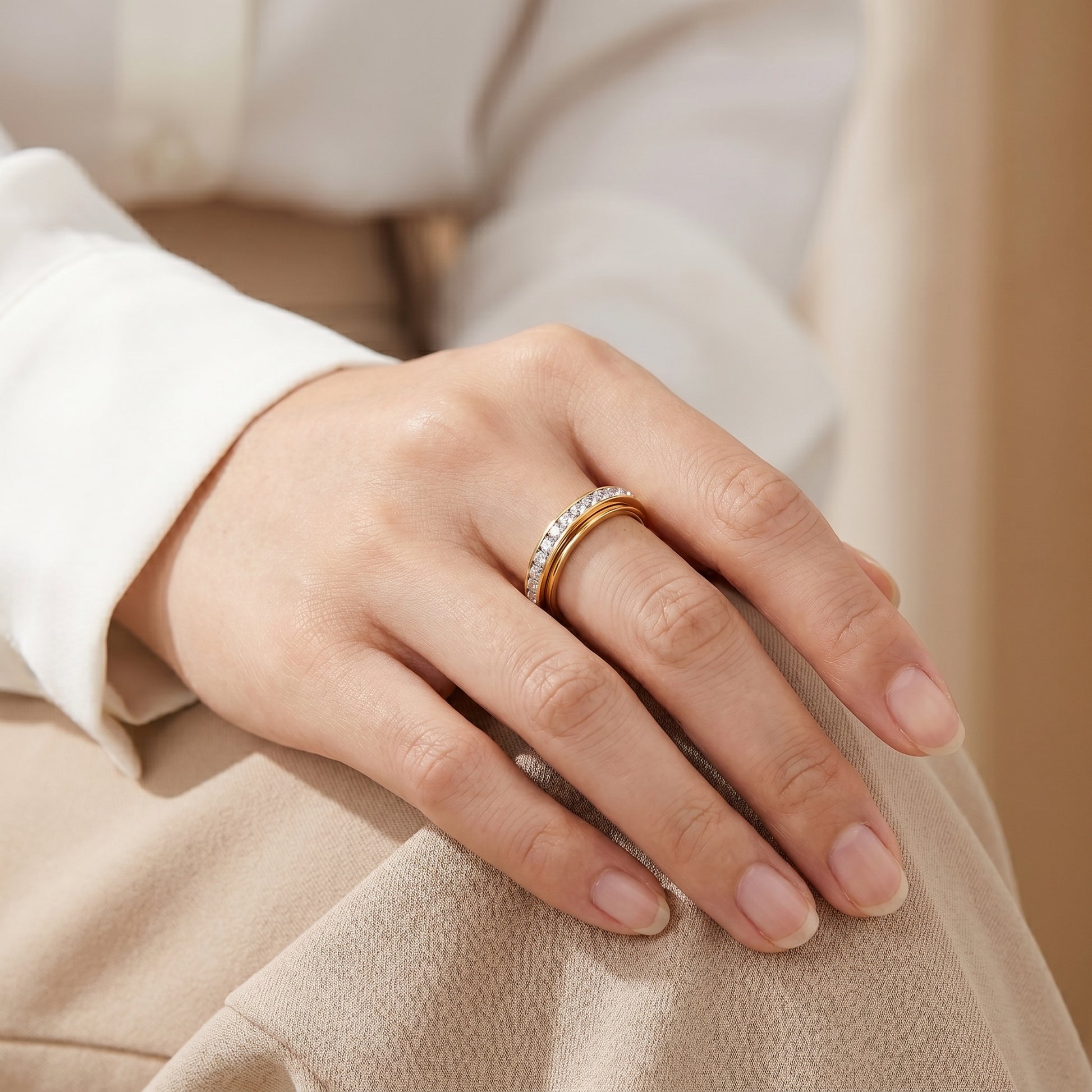 In today’s high-pressure world, anxiety has quietly become one of the heaviest burdens of modern life. This spinner ring is more than just jewelry—it’s an emotional outlet you can reach for every day: a silent, elegant, and effective way to relieve stress, helping you feel more grounded no matter where you are.